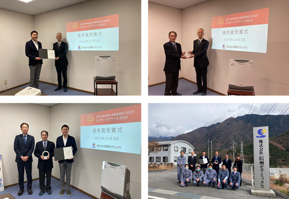 株式会社信州セラミックスは、再生プラスチックを61%使用した空気清浄機の取り組みでエコマークアワード2025優秀賞を受賞しましたが、